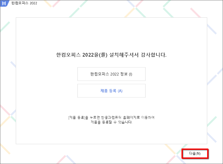 (8) 한컴오피스 2022의 계약서에 동의하고 '다음'을 클릭한다.