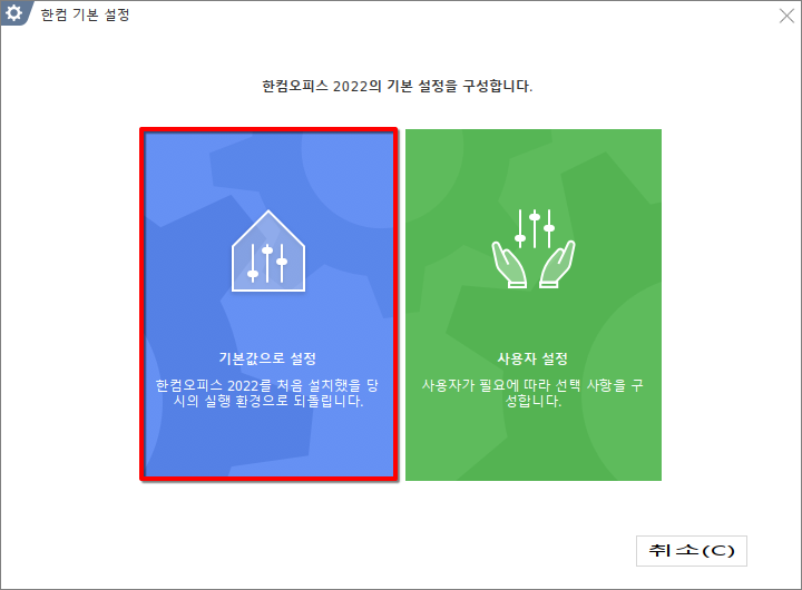 (12) 다음 창에서 '기본값으로 설정'을 클릭한다. 그러면 설치 과정이 종료된다.
