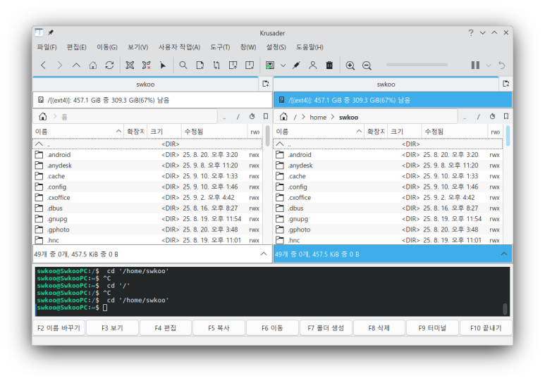 (1) 다음과 명령어를 입력해 Krusader를 설치한다.