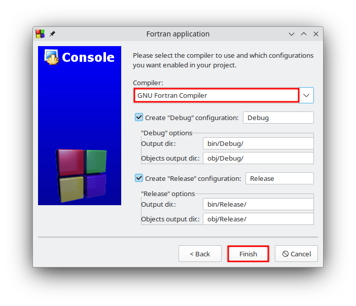 (6) 다음 대화상자에서 컴파일러로 'GNU Fortran Compiler'를 선택하고, 'Finish' 버튼을 클릭한다.